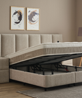 Das Model besteht aus einem gepolsterten Kopfteil und einer Matratze die Ihnen höchsten Schlafkomfort garantiert. Mit diesem Bett können Sie Ihren Raum optimal ausnützen mit dem praktischen Stauraum, der sich unter der Liegefläche befindet. So können Sie fast alle gewünschten Gegenstände sauber und bequem verstauen. Wir garantieren mit diesem Bett einen Blickfang in Ihrem Schlafzimmer.  Erleben Sie das ultimative Schlaferlebnis.